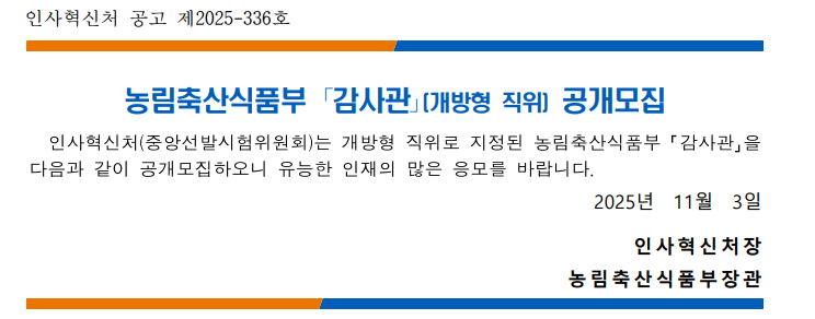 2025-336호 농림축산식품부 감사관(개방형 직위) 공개모집.hwpx (77KB)